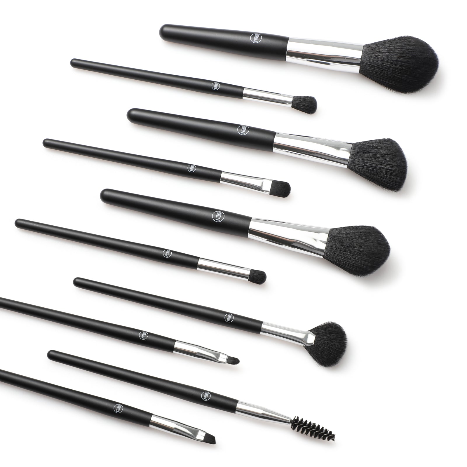 Discover brush perfection with the Brush Me Beautiful Brush Set. This 10-piece set features vegan synthetic fibers, a luxurious black handle, and stunning silver ferrules, all at an affordable price. Create flawless looks time and time again!