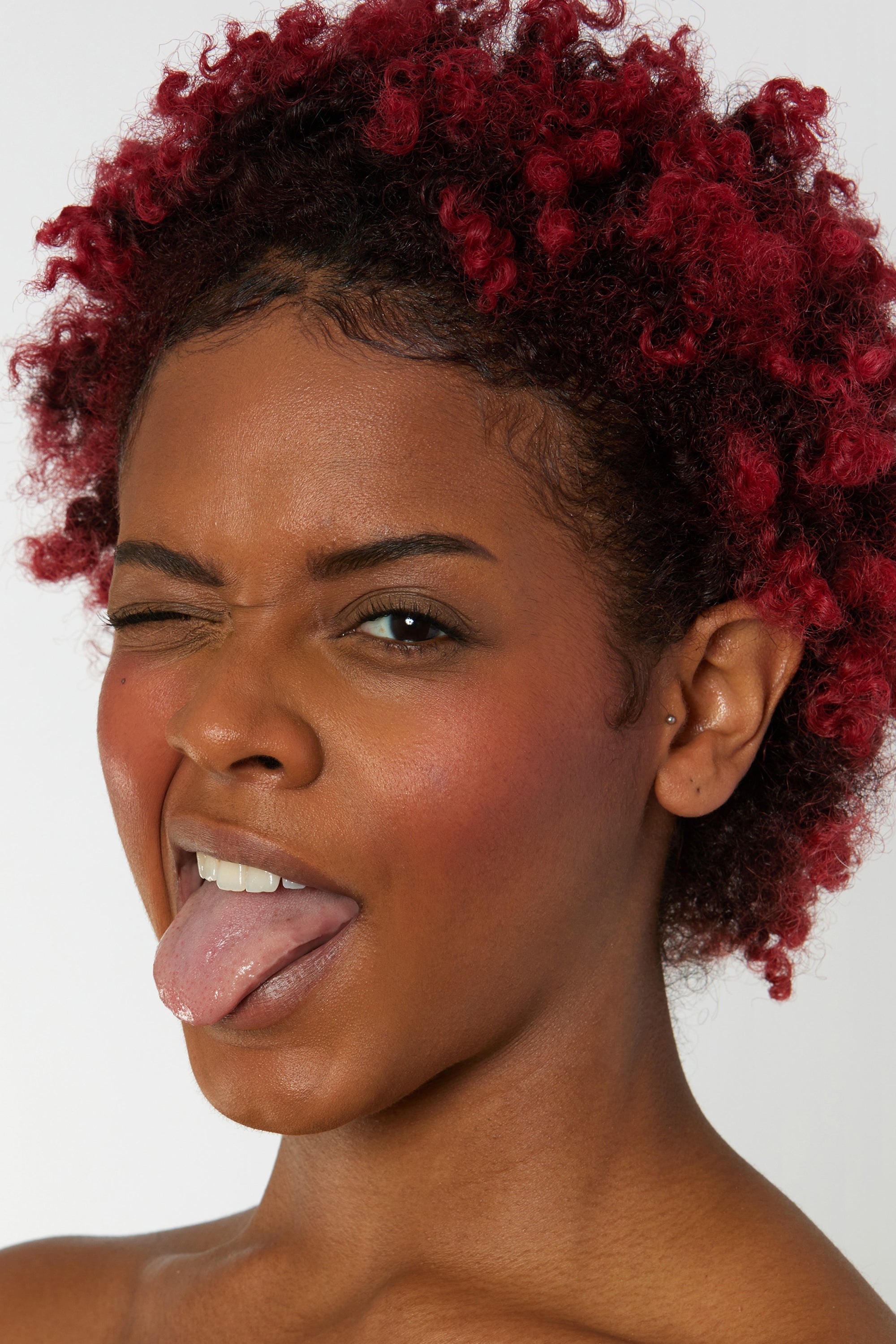 Using your fingertips or a fluffy brush, apply to cheeks and blend upwards.