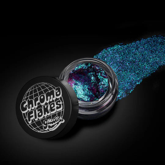 Chroma Flakes are iridescent flakes in a gel base making them a super easy and mess free way to apply your pigments! The formula is soft and dries down onto the skin. They are fantastic to use on top of eyeshadow or even on your cheek bones for the euphoria feel.