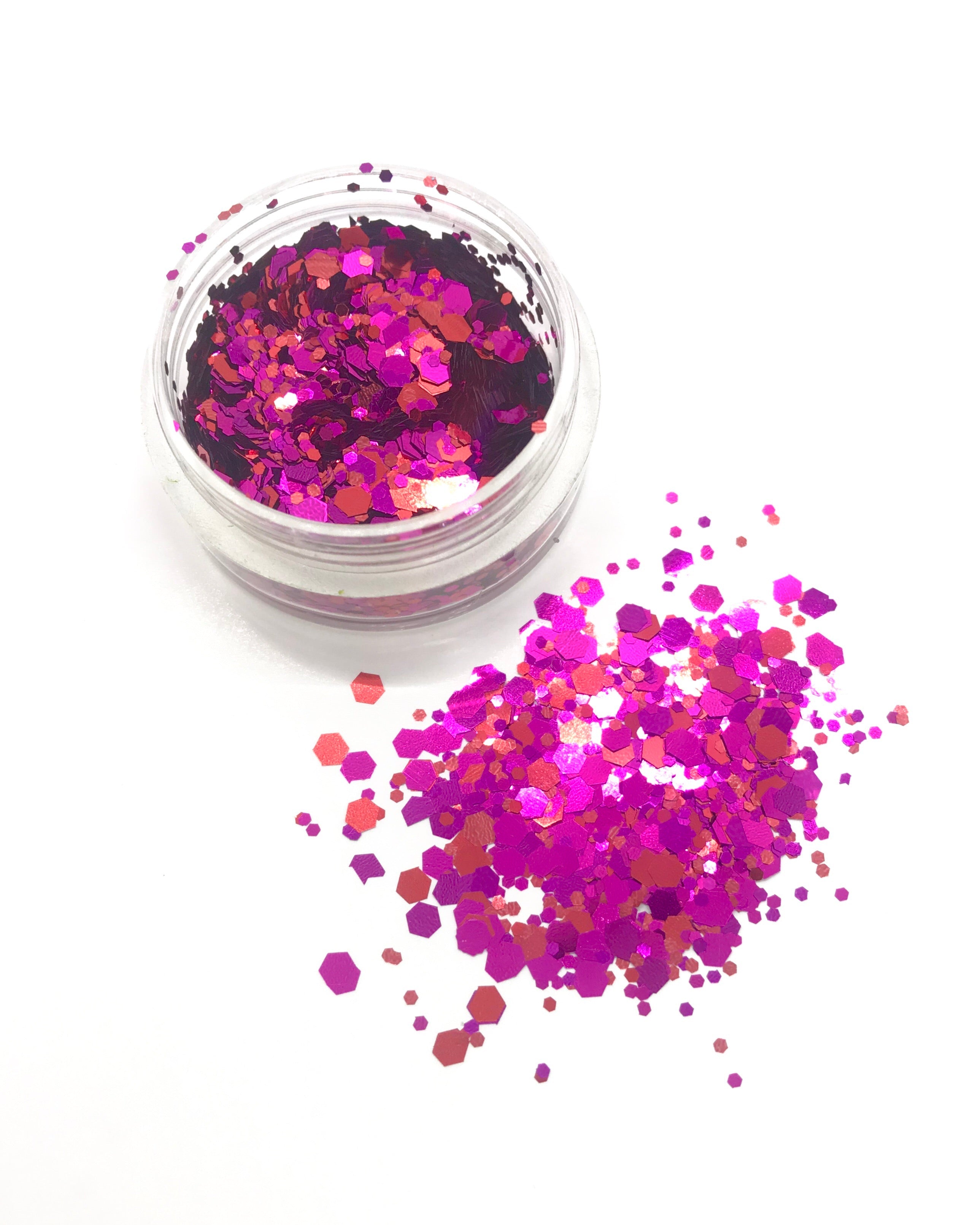 OUR CHUNKY GLITTERS ARE BEAUTIFULLY MIXED FLAKE SIZES THAT CREATE A UNIQUE COMBINATION. THEY ARE HIGHLY REFLECTIVE AND WILL TAKE YOUR EYE LOOK TO A WHOLE DIFFERENT LEVEL! DON'T BE SHY, SHINE ON!
